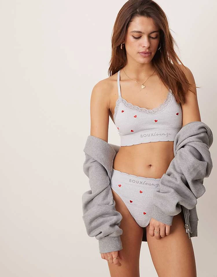 Boux Avenue Ribbed Heart Bralet Set In Grey